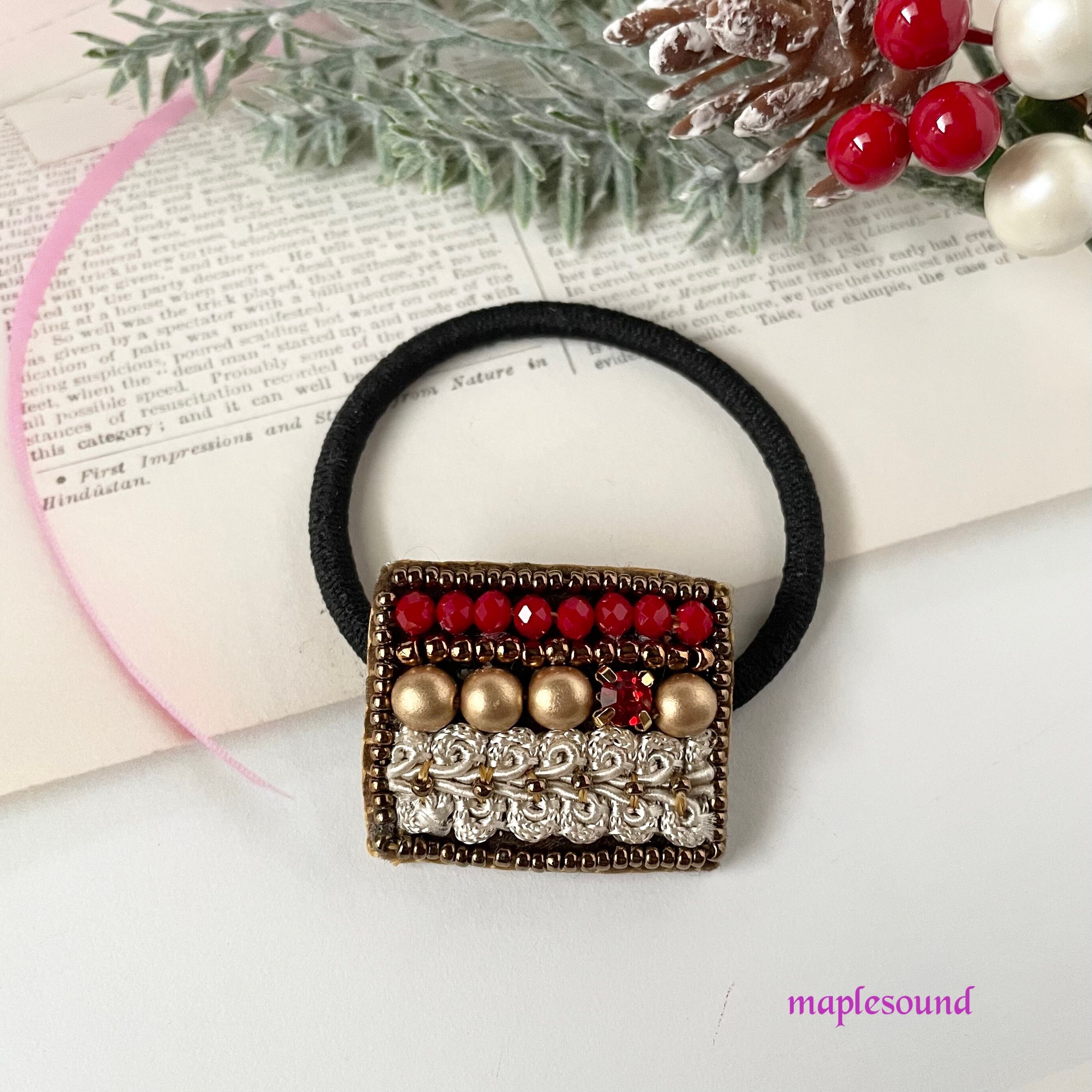 #おしゃれ#ビーズ刺繍ヘアゴム#パール#ゴールド#赤#大人ヘアゴム#レース